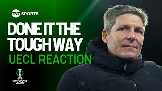 Oliver Glasner reacts after Palace’s 2-2 draw sends them into the Conference League Play-Offs 💪