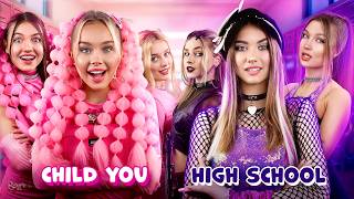 ¡Tú Yo de Preparatoria vs Tu Yo Niña en Un Solo Color! ¡Desafío Rosa y Morado en la Escuela!
